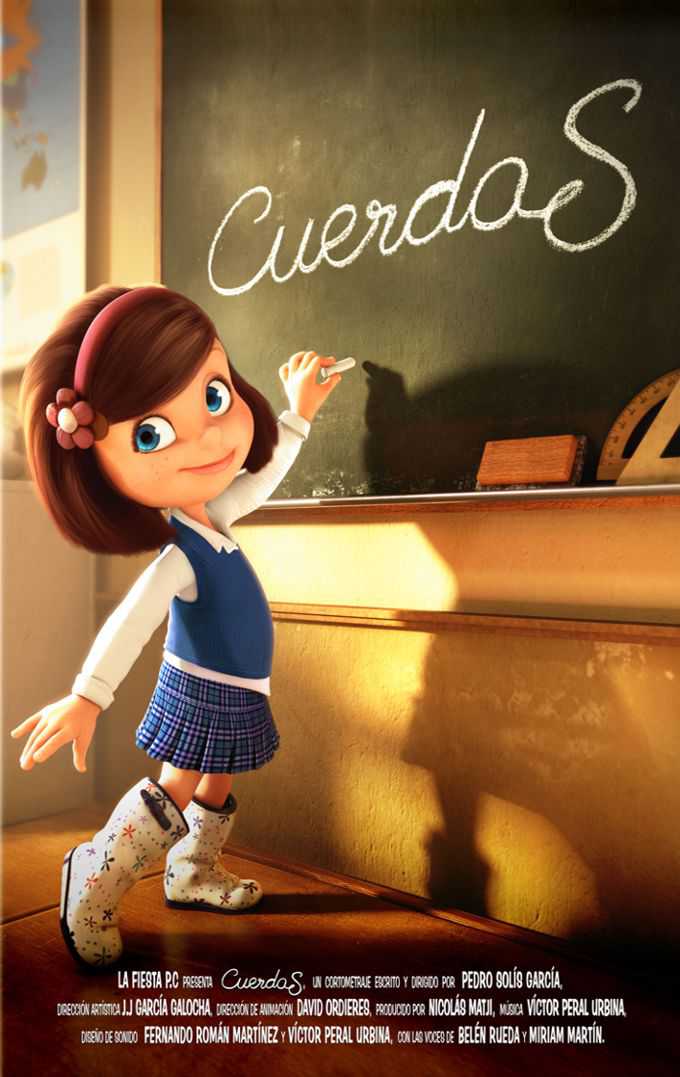 ‘Cuerdas’ is a short film written and directed by Pedro Solís García. ‘Cuerdas’ was the 2014 winner of the the Goya ® award for ‘the Best Spanish short film animation’. The film is full of nuances and describes a tender story of friendship between two special children. ‘Strings’ also speaks of values ​​and illusions and it is able to captivate the viewer from the first frame and the first musical note to the end of the film credits. The rating of the new short film by Pedro Solis is ‘for all ages and special interest to children’. The Spanish Ministry of Culture has recommended ‘Strings’ for its educational vocation. "It is a round piece of art that grows up every time that you watch it." Synopsis: María’s routine at school is altered by the arrival of a very special child. Soon, they become close friends.